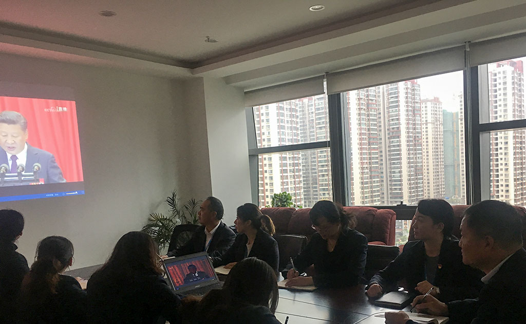 大會上,習總書記總結(jié)了十八大以來我國各項事業(yè)取得的卓越發(fā)展成就,強調(diào)全黨同志必須全面貫徹黨的基本理論、基本路線、基本方略,更好的引導(dǎo)黨和人民事業(yè)的向前發(fā)展。各級干部職工全程認真聽取了習總書記報告,跟隨報告進程的不斷推進,不時發(fā)出陣陣熱烈的掌聲。