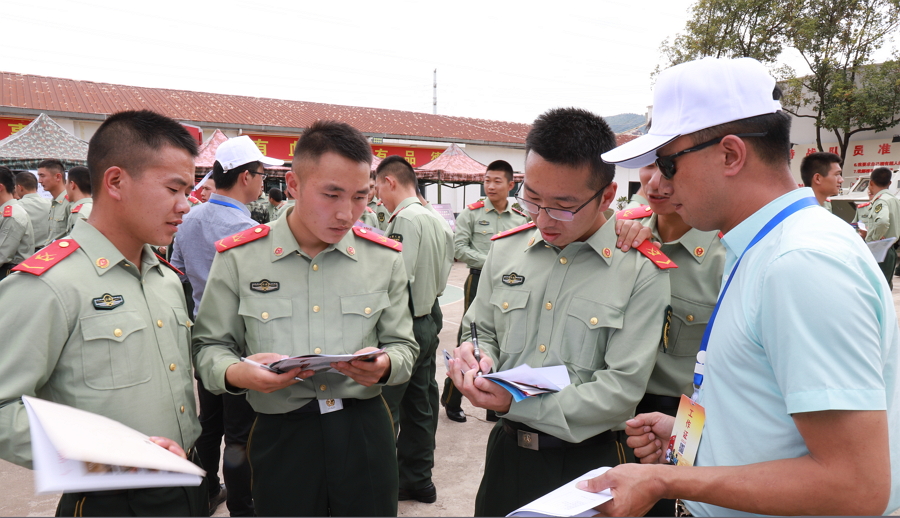 本網(wǎng)訊(通訊員 李 兵 報(bào)道)8月28日,武警云南總隊(duì)機(jī)動(dòng)第一支隊(duì)特戰(zhàn)大隊(duì)營(yíng)區(qū),云南省“退役不褪色,就業(yè)再啟航”進(jìn)軍營(yíng)專場(chǎng)招聘會(huì)正在火熱進(jìn)行。來(lái)自全省27家用人單位,帶著1000余個(gè)崗位走進(jìn)軍營(yíng),為今年即將退役的官兵提供暖心就業(yè)服務(wù)。