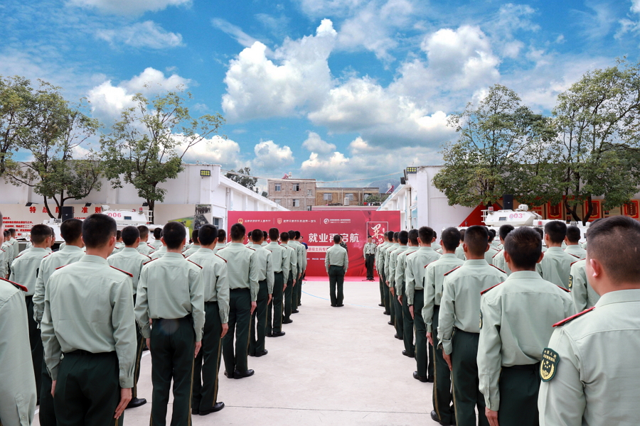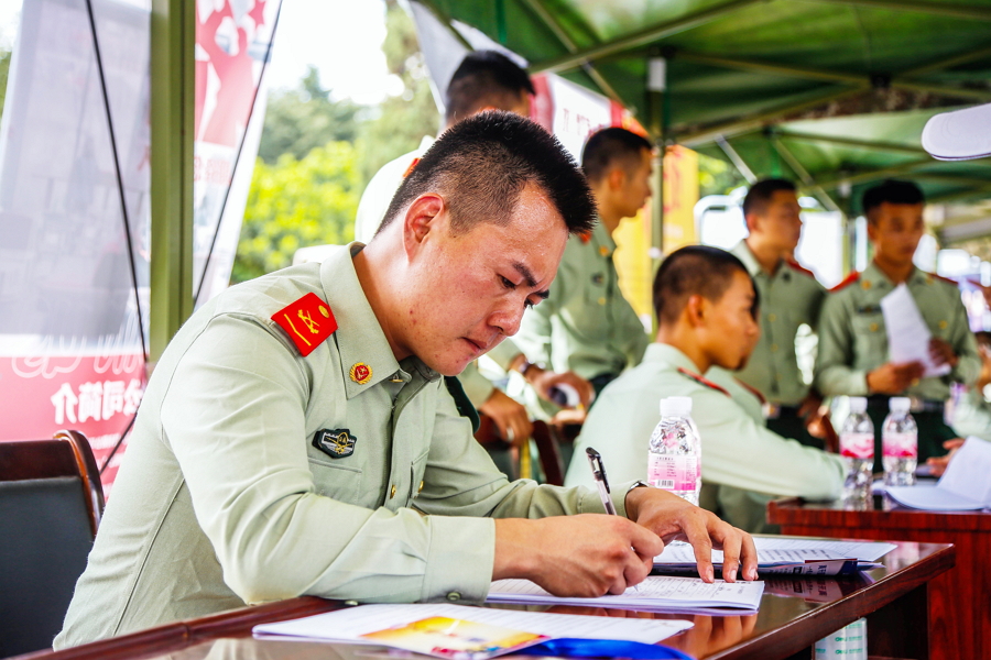 本網(wǎng)訊(通訊員 李 兵 報(bào)道)8月28日,武警云南總隊(duì)機(jī)動(dòng)第一支隊(duì)特戰(zhàn)大隊(duì)營(yíng)區(qū),云南省“退役不褪色,就業(yè)再啟航”進(jìn)軍營(yíng)專場(chǎng)招聘會(huì)正在火熱進(jìn)行。來(lái)自全省27家用人單位,帶著1000余個(gè)崗位走進(jìn)軍營(yíng),為今年即將退役的官兵提供暖心就業(yè)服務(wù)。